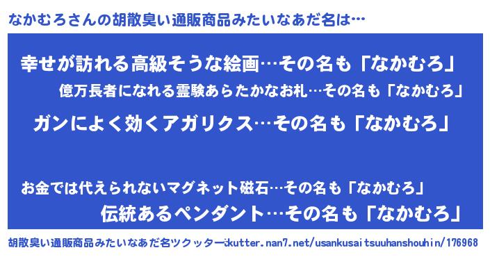| 男性向けラノベタイトル風あだ名 | 『ナカムロスレイヤー』 |