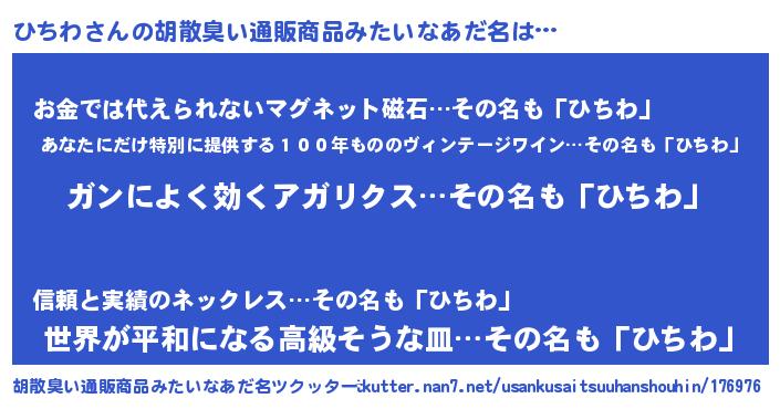 | 意味不明あだ名 | 『自称ひちわ』『眠気覚ましガムひちわ味』 |