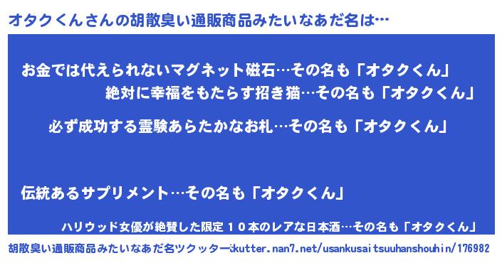 | ヘコむあだ名 | 『オタっふぃ~』『オタクくん(笑)』 |