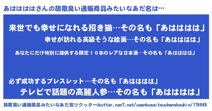 あははははさんの胡散臭い通販商品みたいなあだ名をツクッター!