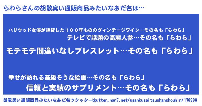 | ヘコむあだ名 | 『らわにー』『らわを』『レバニラ』 |
