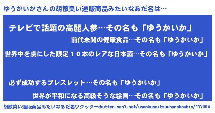 ゆうかいかさんの胡散臭い通販商品みたいなあだ名をツクッター!