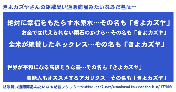 | 意味不明あだ名 | 『とにかく怪しいきよカズヤ』 |