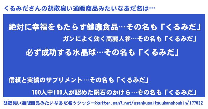 | ヘコむあだ名 | 『くるにゅー』『くるみだ(爆)』 |