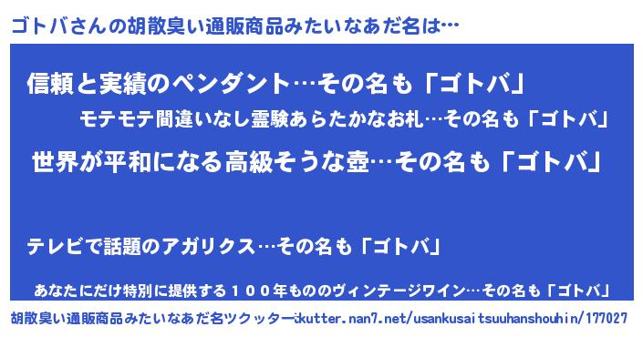 | 欧米人風あだ名 | 『ゴトバクリステル』『トリンドルゴトバ』 |