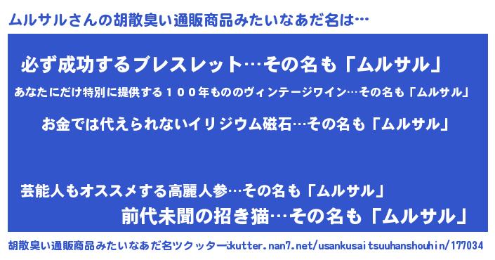 | ヘコむあだ名 | 『ムルにゅー』『ムルサル(笑)』 |