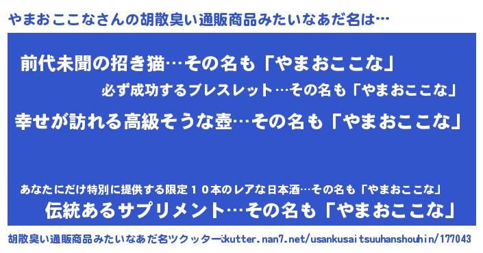 | 男性向けラノベタイトル風あだ名 | 『やはりやまおここなの青春ラブコメはまちがっている 』 |