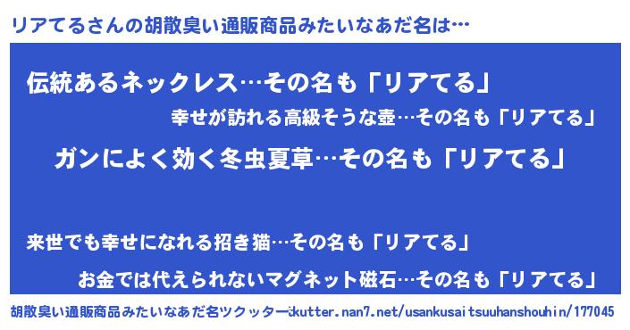 | 恥ずかしいあだ名 | 『リアテルデラックス』『リアリンリン』 |