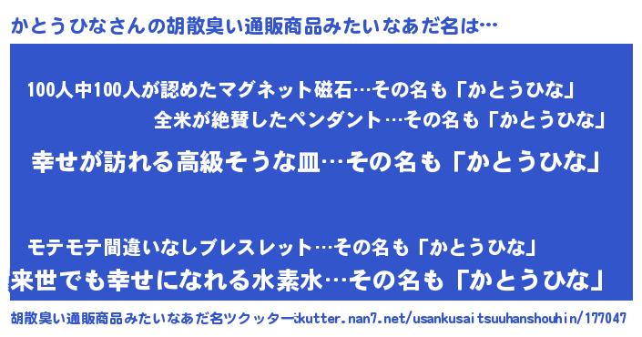 | 意味不明あだ名 | 『かとうひなフォーエバー』 |