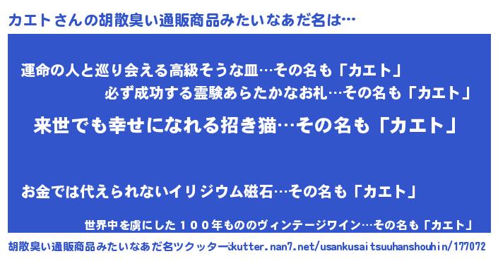 | 意味不明あだ名 | 『永久保存カエト』『カエトフォーエバー』 |