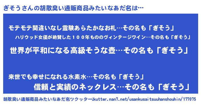 | 欧米人風あだ名 | 『ぎそうクリステル』『マイケルぎそう』 |