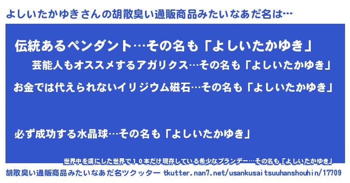 | 意味不明あだ名 | 『眠気覚ましガムよしいたかゆき味』 |