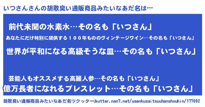 | ヒーロー風カッコイイあだ名 | 『ウルトラいつさんマン』『ネオイツサン』 |