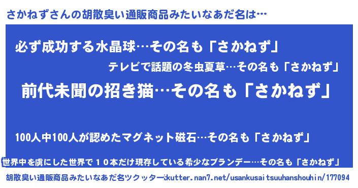 | 意味不明あだ名 | 『永久保存さかねず』『ペロリンさかねず』 |