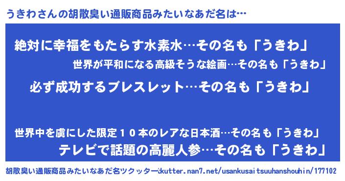 | ヘコむあだ名 | 『うきにー』『うきわ(小並感)』 |