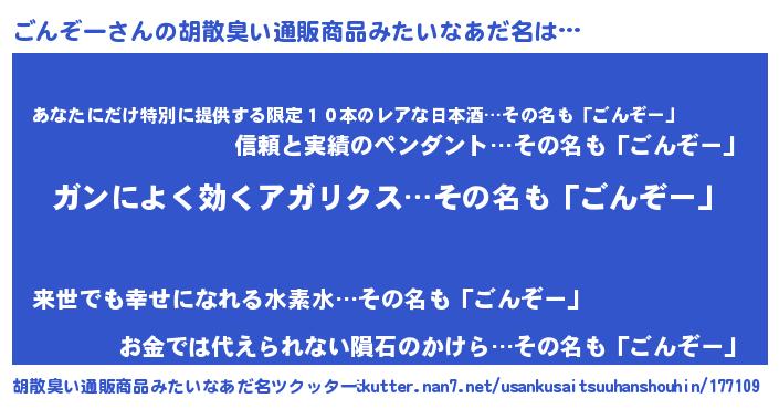 | 意味不明あだ名 | 『自称ごんぞー』『エリンギ科ごんぞー属』 |
