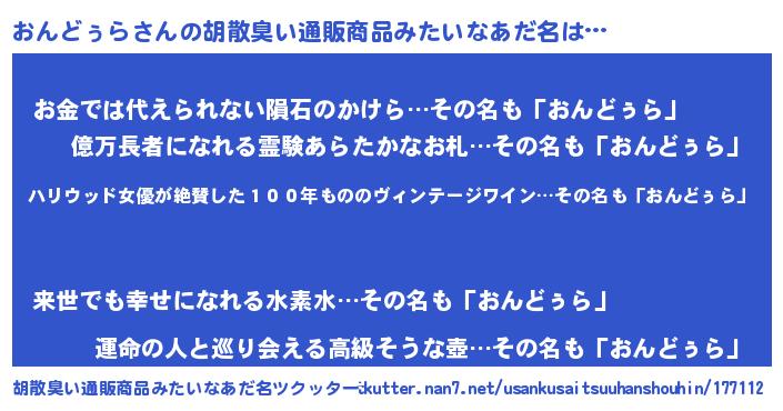 | 意味不明あだ名 | 『住所不定無職おんどぅら(6歳)』 |