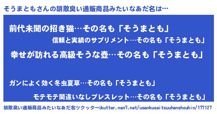 | 肩書あだ名 | 『そうまとも大統領』『そうまとも中佐』 |