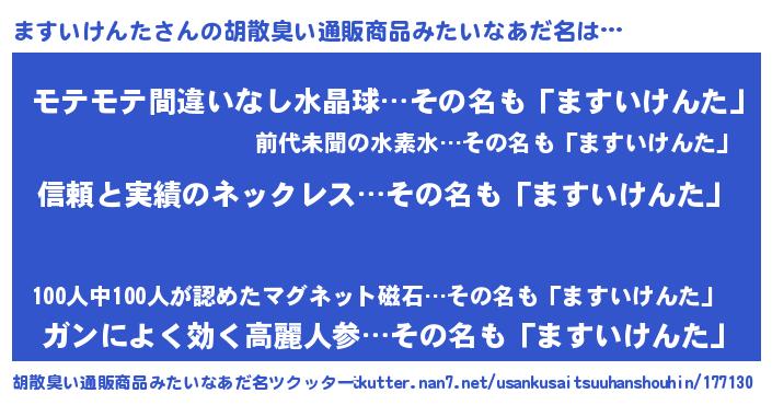 | 欧米人風あだ名 | 『ウサインますいけんた』 |