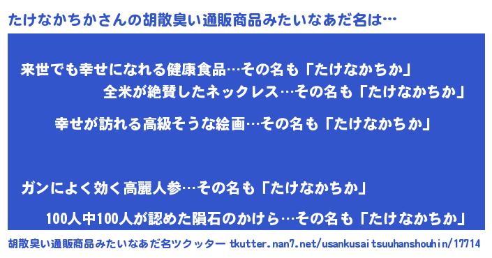 | 肩書あだ名 | 『たけなかちか総理大臣』 |