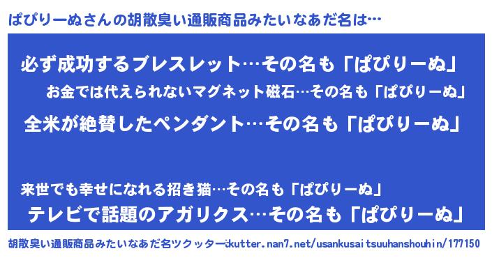 | ヘコむあだ名 | 『ぱぴっちょ』『ぱぴにー』 |
