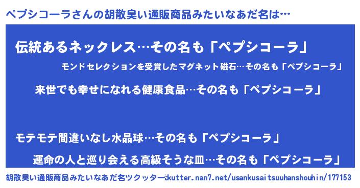 | 女子向けラノベタイトル風あだ名 | 『ペプシコーラの契約王妃』 |