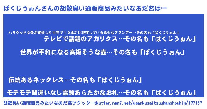 | ヒーロー風カッコイイあだ名 | 『ウルトラぱくじうぉんマン』 |