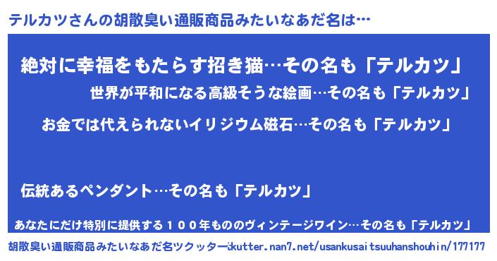 | ヒーロー風カッコイイあだ名 | 『慈愛の使者テルカツ』『ネオテルカツ』 |