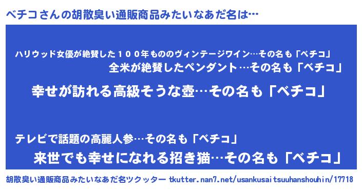 | 女子向けラノベタイトル風あだ名 | 『ベチコの雑貨屋さん』 |