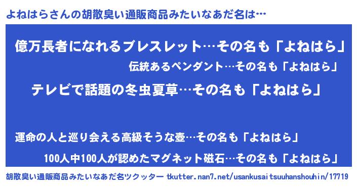 | 意味不明あだ名 | 『自称よねはら』『ペロリンよねはら』 |