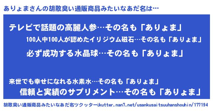ありょまさんの胡散臭い通販商品みたいなあだ名をツクッター!