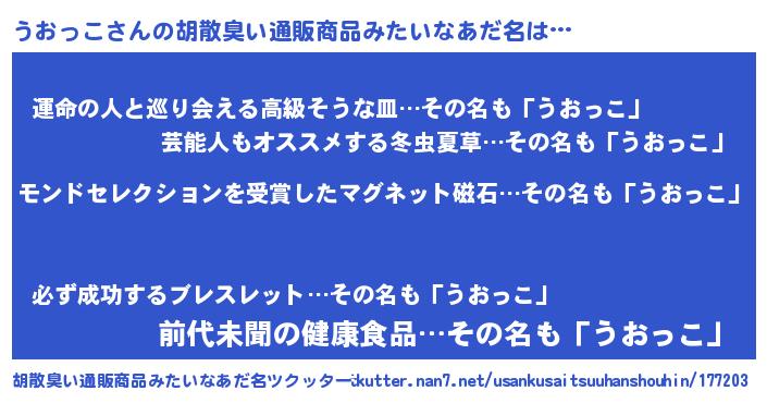 | ヒーロー風カッコイイあだ名 | 『天空の使者うおっこ』『ネオウオッコ』 |