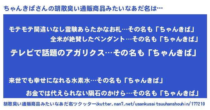 | ヒーロー風カッコイイあだ名 | 『サイバー戦士チャンキバ』 |