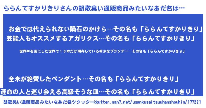 | 欧米人風あだ名 | 『トリンドルららんてすかりきり』 |