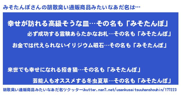 | ヘコむあだ名 | 『なまこ酢』『みそっふぃ~』 |