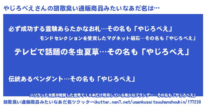 | 男性向けラノベタイトル風あだ名 | 『Re:やじろべえから始める異世界生活』 |