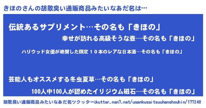 | 意味不明あだ名 | 『住所不定無職きほの(53歳)』『自称きほの』 |