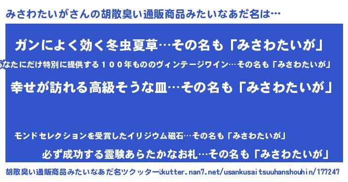 | 肩書あだ名 | 『みさわたいが機長』『みさわたいが総統』 |