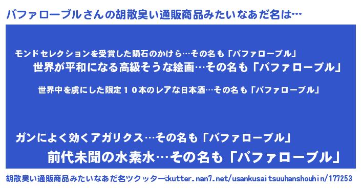 | 意味不明あだ名 | 『住所不定無職バファローブル(40歳)』 |