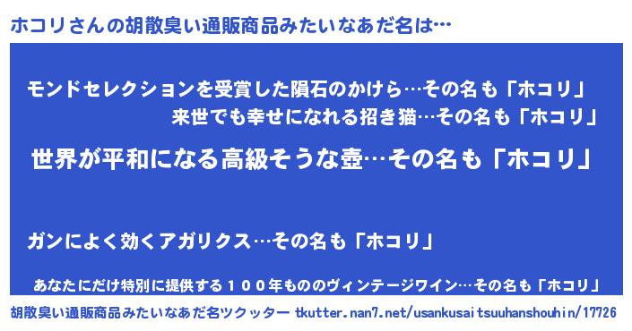 意味不明あだ名 | 『ホコリフォーエバー』『永久保存ホコリ』 |