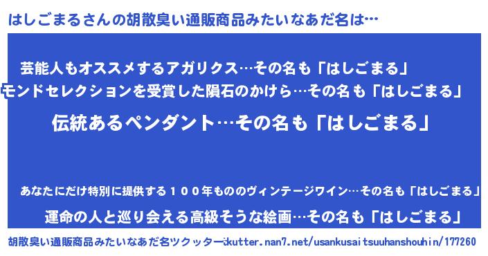 | 欧米人風あだ名 | 『ウサインはしごまる』 |