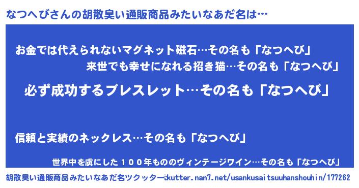 | ヘコむあだ名 | 『なつにー』『なつへび(小並感)』 |