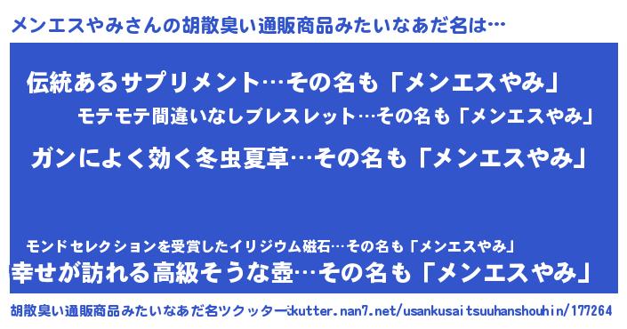 | ヒーロー風カッコイイあだ名 | 『ウルトラ戦士メンエスヤミ』 |