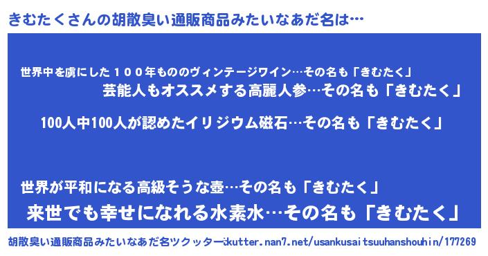 | ヘコむあだ名 | 『きむたく(爆)』『つくし』『きむお』 |