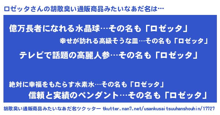 | 意味不明あだ名 | 『自称ロゼッタ』『ペロリンロゼッタ』 |