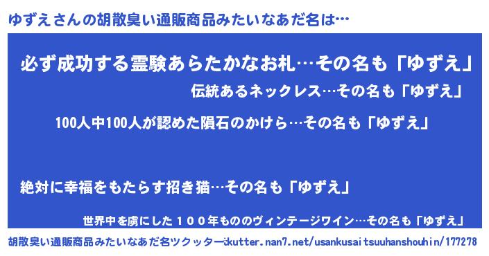 | ヘコむあだ名 | 『ゆずもー』『ゆずっちょ』『豆乳』 |