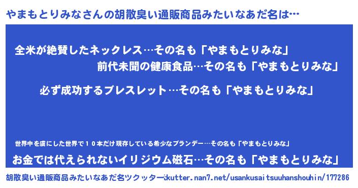 | 恥ずかしいあだ名 | 『プリティーやまもとりみな』『やまちん』 |