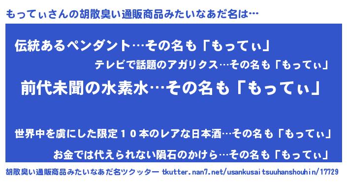 | ヘコむあだ名 | 『もってぃ(遠い目)』『もっ太郎』 |