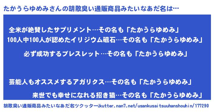 | 恥ずかしいあだ名 | 『プリティーたかうらゆめみ』『たかちん』 |