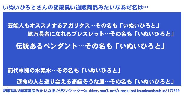 | 意味不明あだ名 | 『とにかく怪しいいぬいひろと』 |